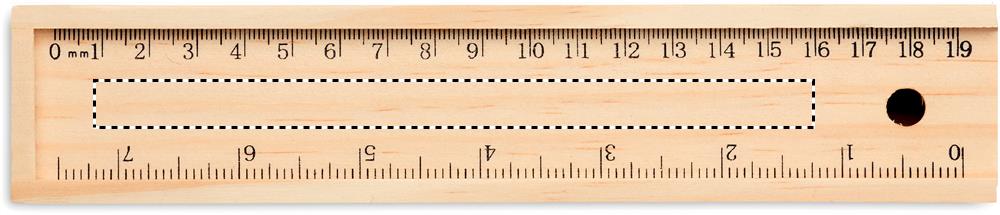 12-teiliges Schreibset in einer Holzbox (2 Bleistifte, 6 Buntstifte, Spitzer, Radierer, Lineal in cm und Inch). Das Lineal dient auch als Deckel.