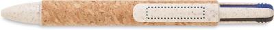 4-Farb-Kugelschreiber. Schaft aus Kork und Details aus Weizenstroh (50%) und ABS-Kunststoff (50%). Tinte: blau, schwarz, rot, grün.