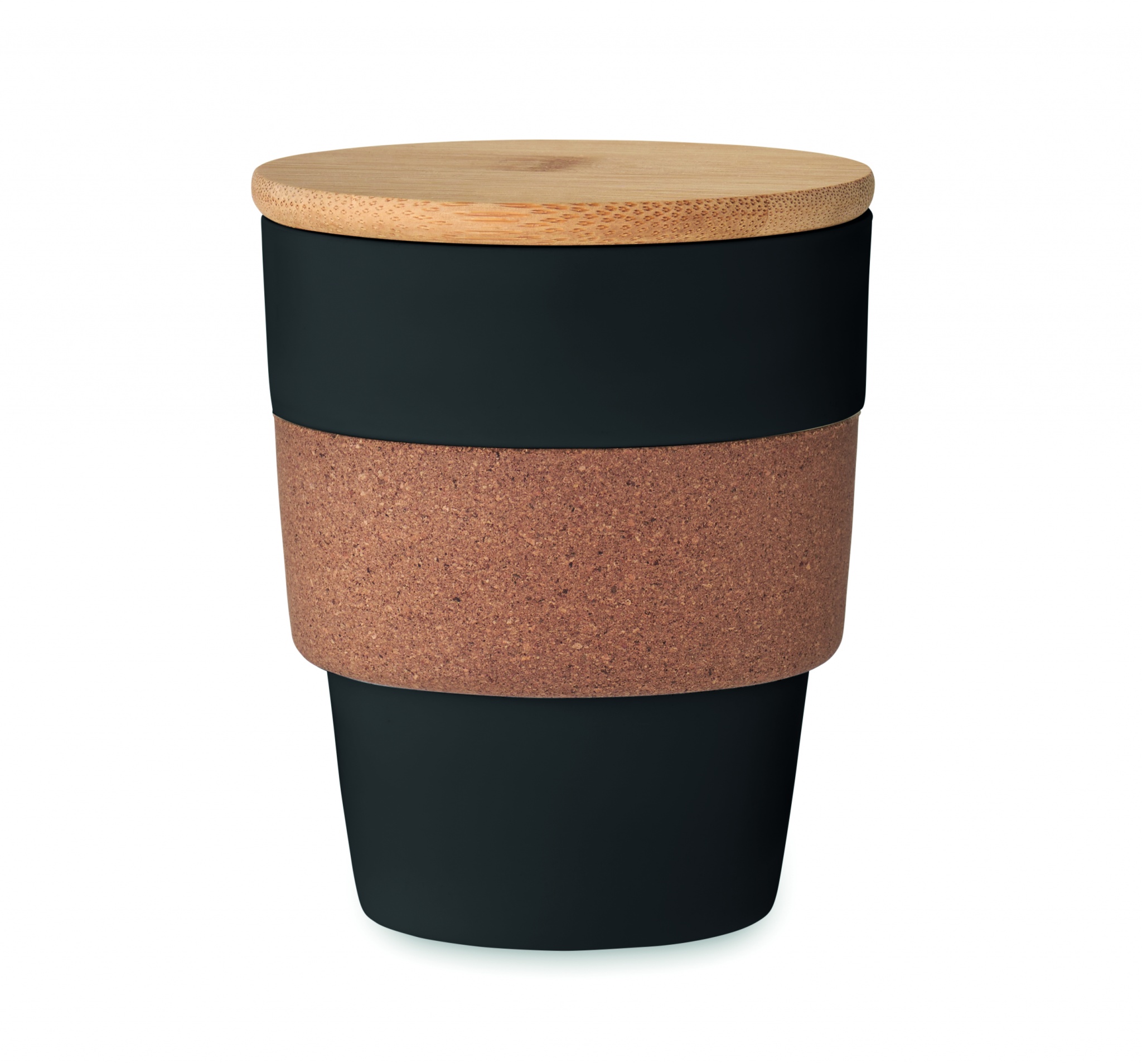 Einwandiger Trinkbecher aus recyceltem PP. Griff aus Kork und Deckel aus Bambus. Füllmenge: 300 ml. Da es sich um einen einwandigen Becher handelt, kann es trotzdem zu einer Wärmeübertragung kommen. Bambus ist ein natürliches Produkt, es kann daher zu leichten Abweichungen in Farbe, Dekor und Maßen kommen.