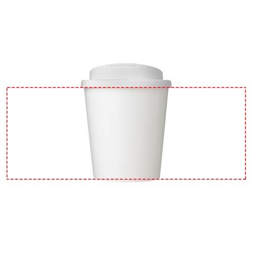 Doppelwandiger Isolierbecher mit drehbarem, auslaufsicherem Deckel und einem vollfarbigen Wraparound-Design. Hergestellt aus insgesamt 65 % recyceltem Material (recycelter Becher und schwarze Innenschicht) und mit einem Standard-Plastikdeckel. Der Becher ist vollständig recycelbar, spülmaschinenfest und mikrowellengeeignet. Fassungsvermögen: 250 ml. BPA frei. Verpackt in einem kompostierbaren Beutel. Hergestellt in UK.