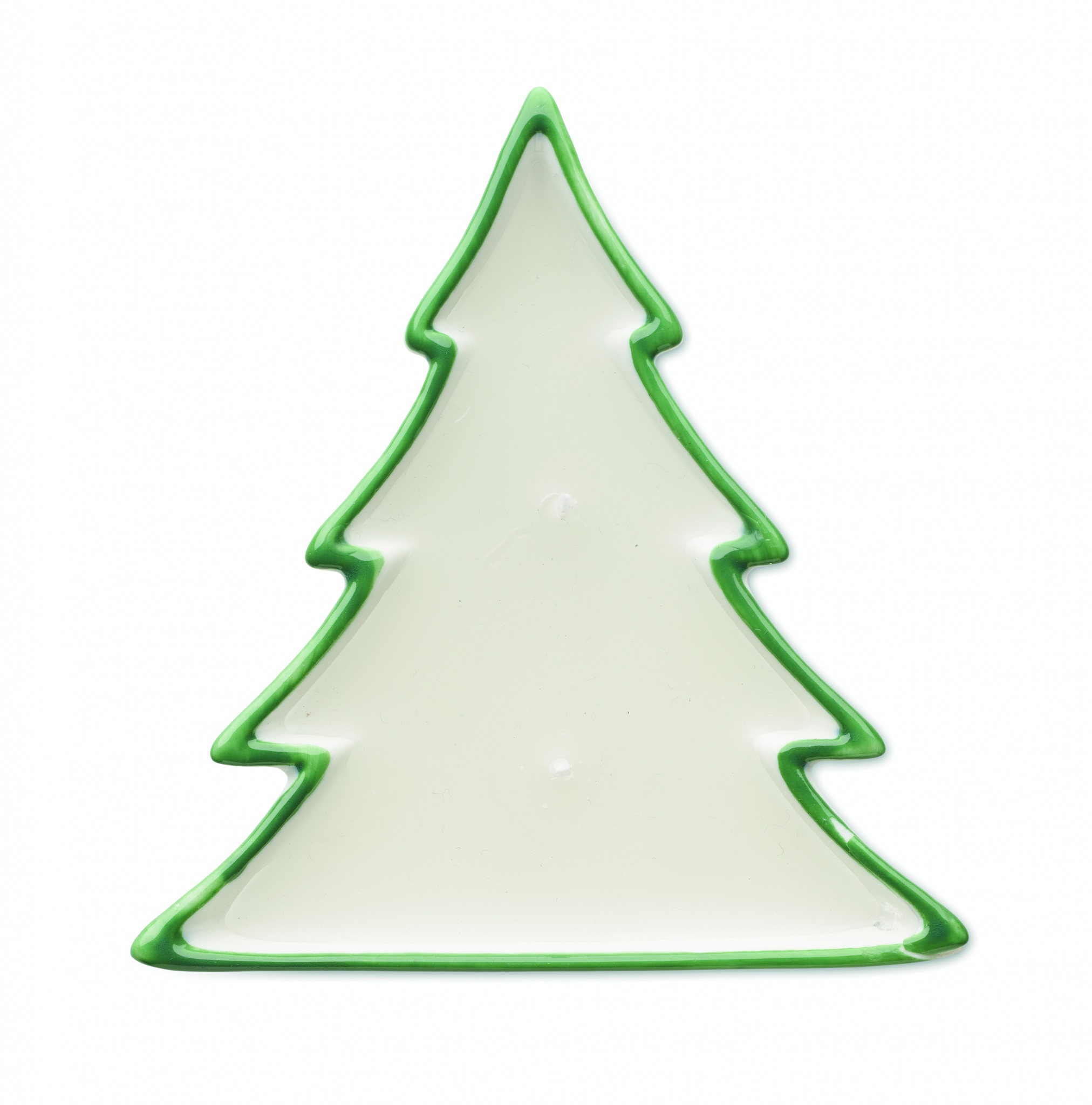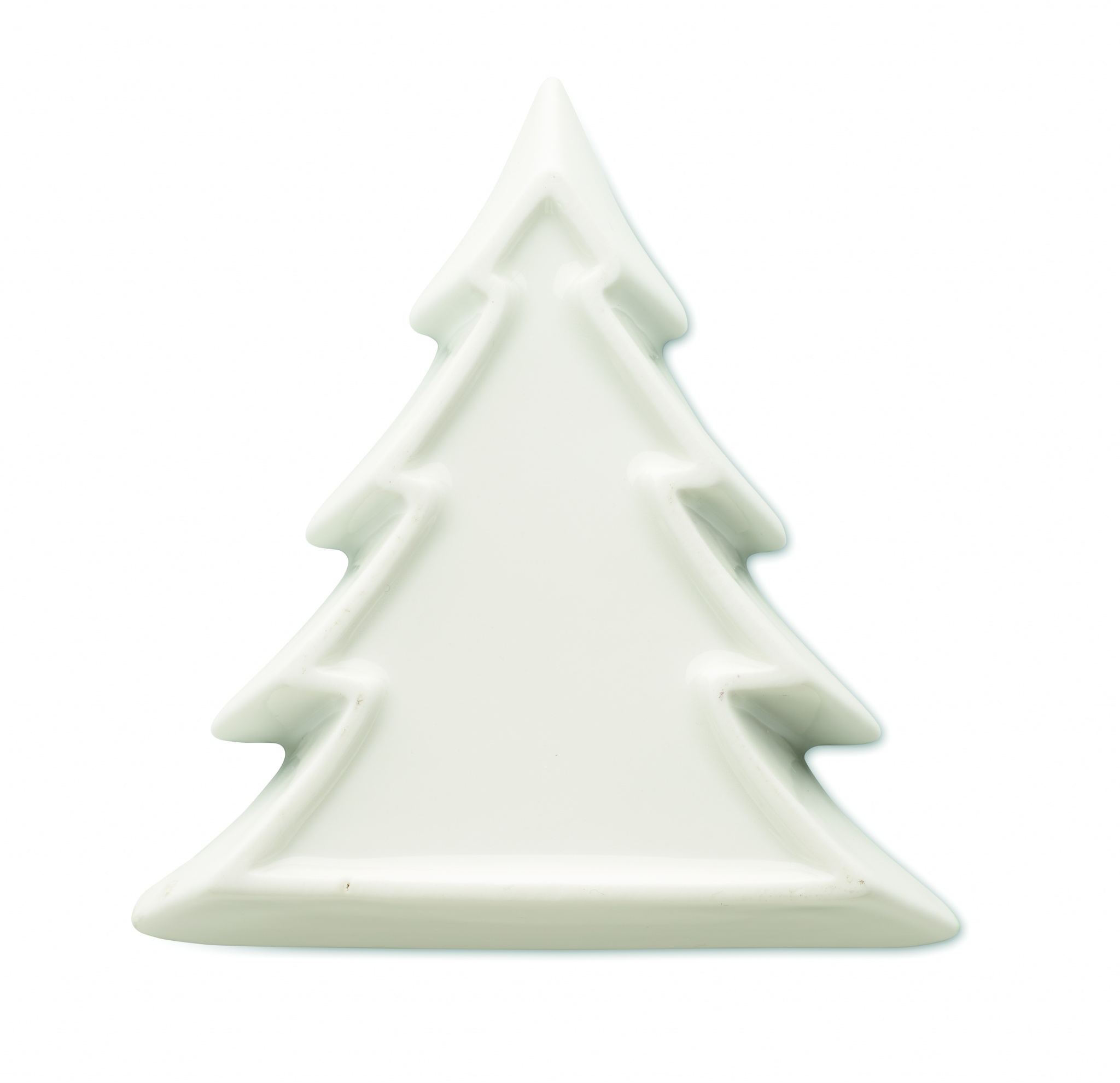 Wachskerze auf pflanzlicher Basis in Porzellanhalter in Optik einer Tanne. 2 Dochte. 60 g. Brenndauer: 4 Stunden.