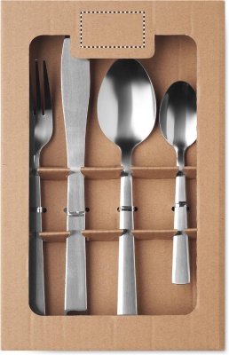 16 piece stainless steel cutlery set for 4 place settings. Including: tea spoon, table spoon, fork, knife. Presented in a kraft paper box.