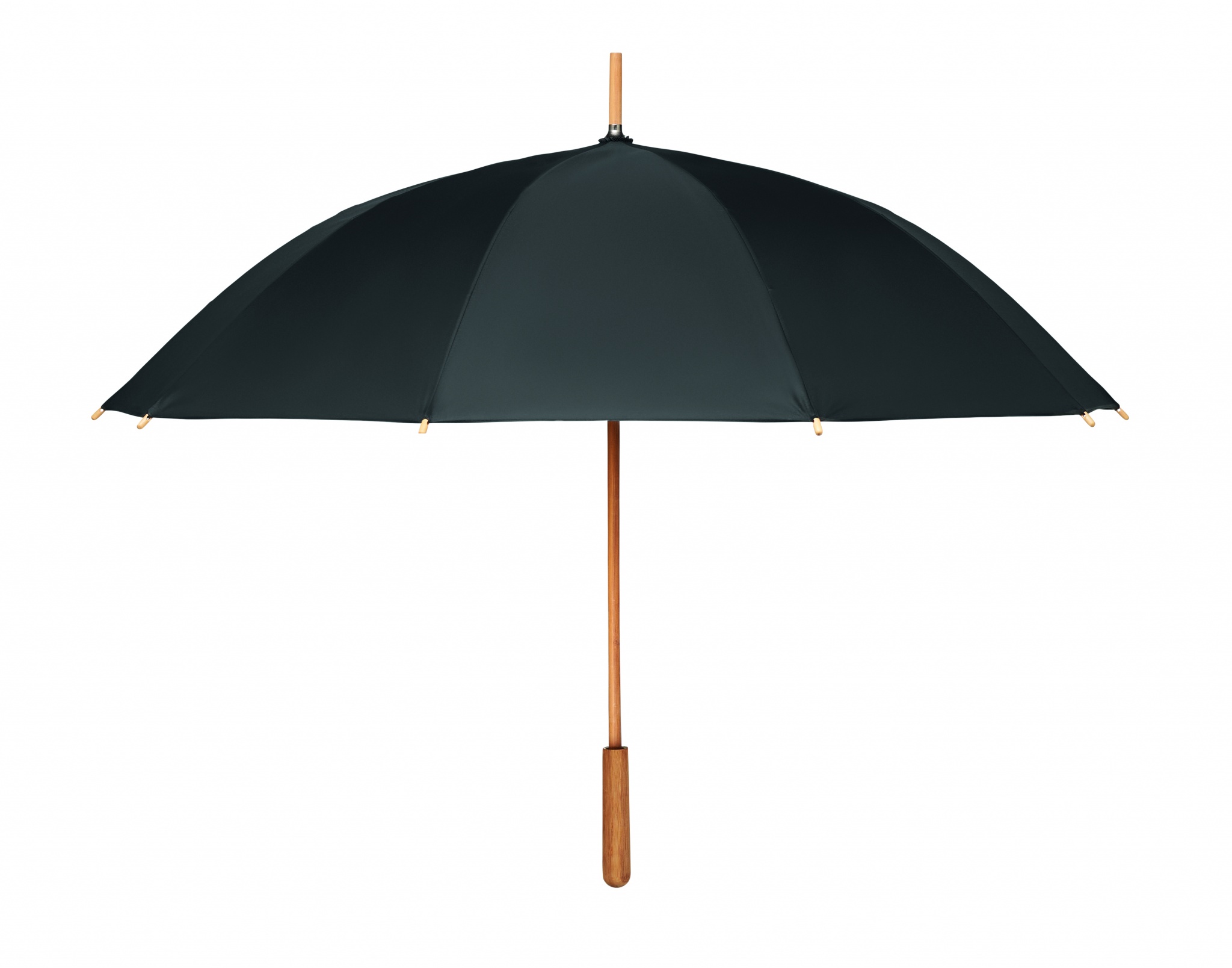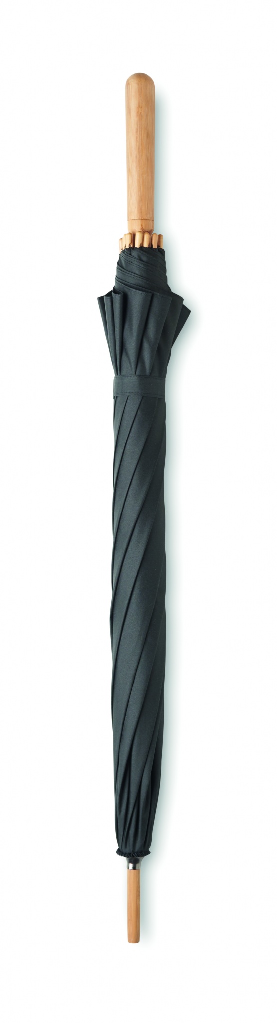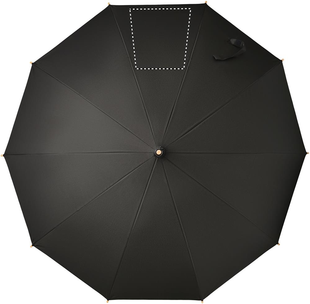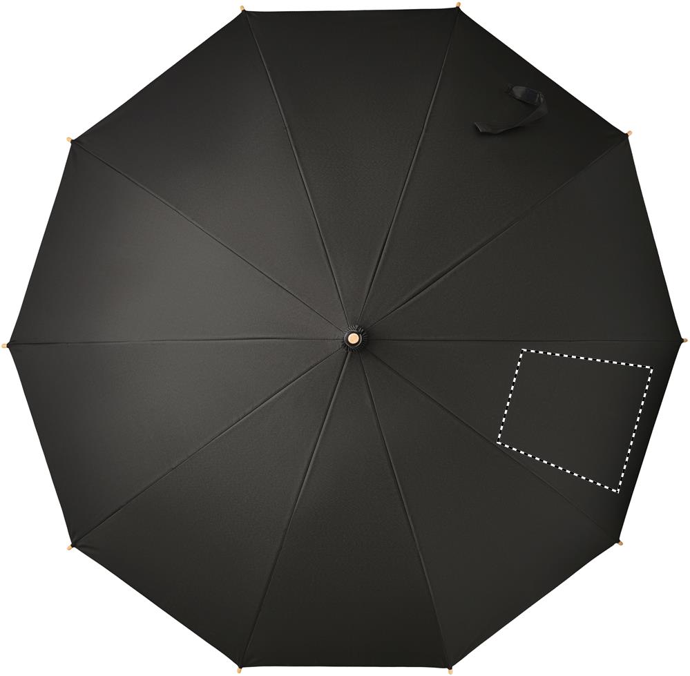 23.5 inch manual open windproof umbrella in 190T RPET pongee material with bamboo shaft, tips and handle. Fibre-glass ribs. Manual closure. Bamboo is a natural product, there may be slight variations in colour and size per item, which can affect the final decoration outcome.
