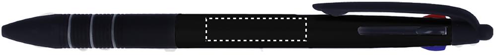 ABS pen with stylus and 3 ink colours: red, blue and black.