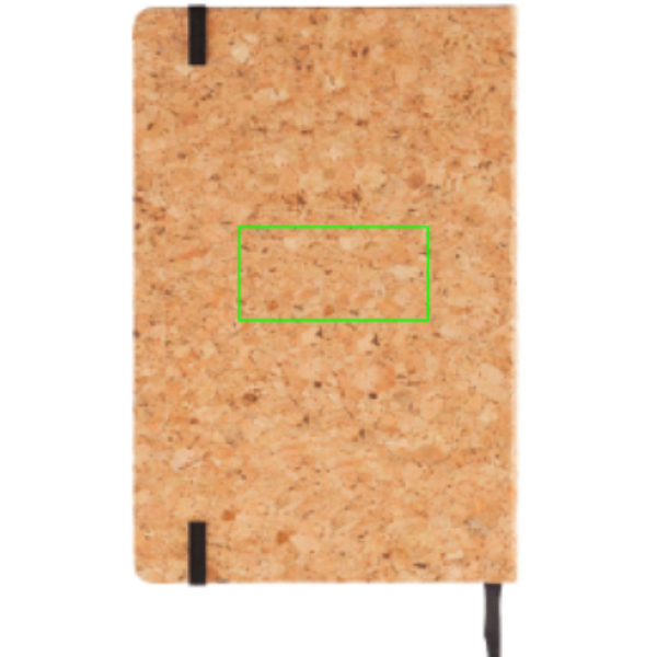 ECO notebook made out of natural cork with 160 pages of 80g/m2 paper. With black page divider and black elastic band. Including bamboo pen with stylus tip and ballpoint.
