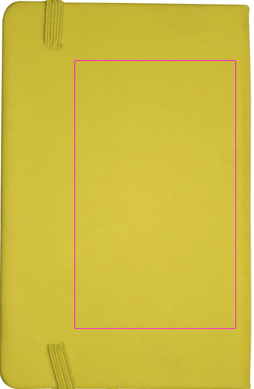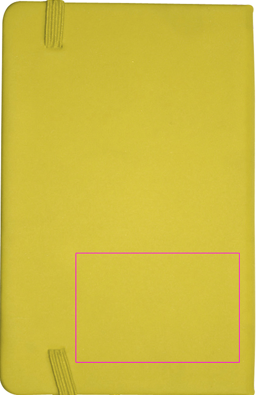 DIN A6 notebook in velvety-PU cover with 170 neutral pages. We print your logo on the cover.