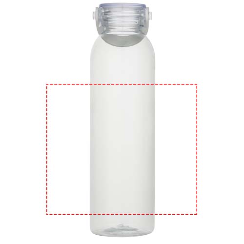 Water bottle made from RCS certified RPET, featuring a convenient silicone carry handle. In compliance with the EFSA approved PET recycling process. Volume capacity: 630 ml.