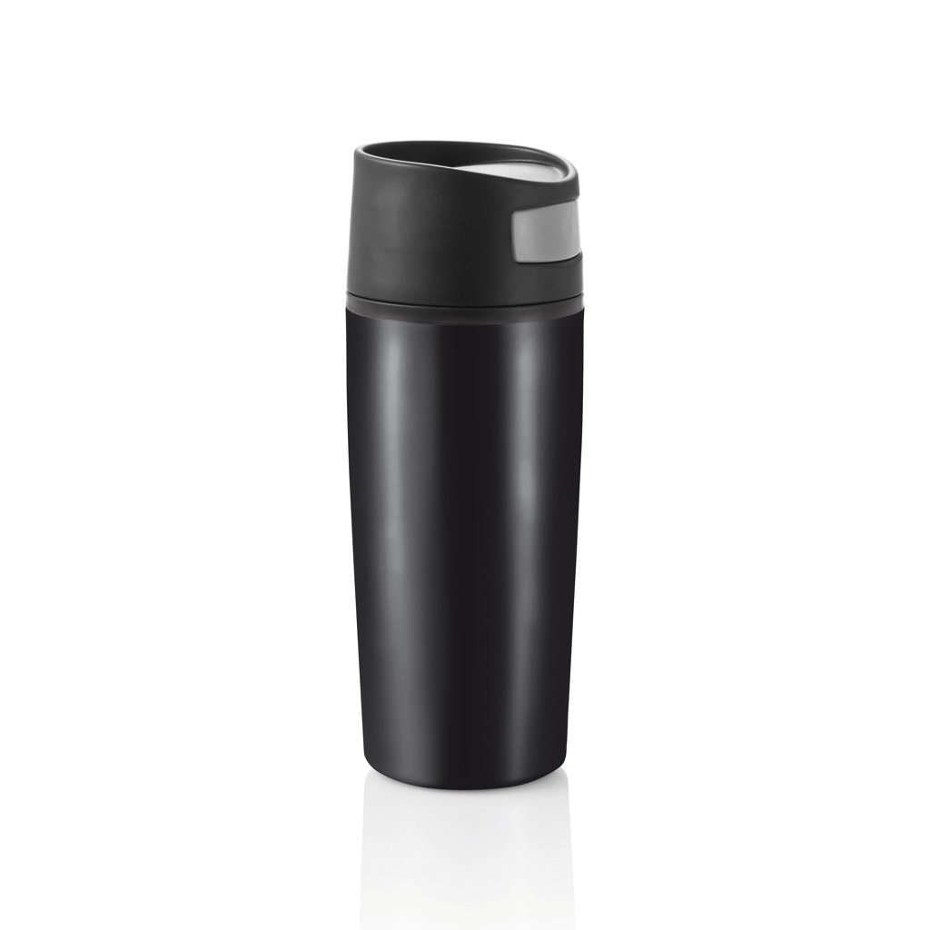 Auto is a 300ml tumbler with black PP coating and an innovative push system which allows you to control it with only one hand. Ideal for in the car. Registered design®