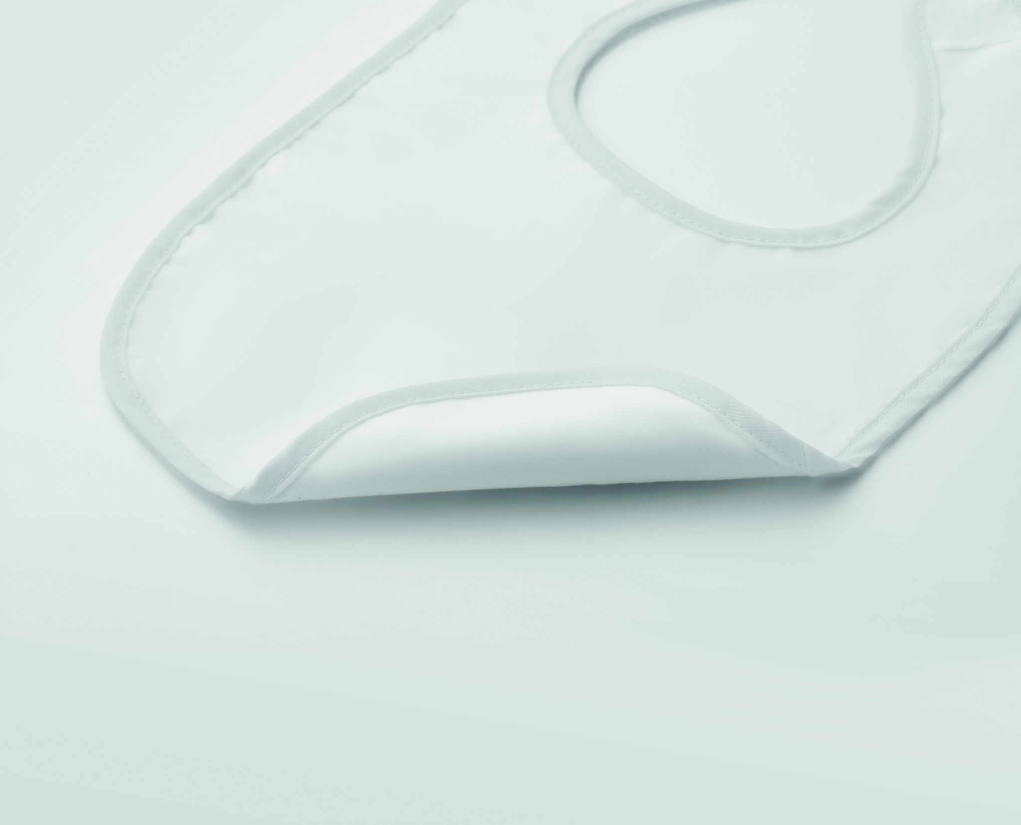 Baby bib in Polycotton and backing in PEVA. Hook and loop closure.