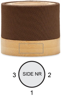 5.0 wireless speaker in RPET casing with bamboo detail on top. 1 Rechargeable Li-ION 300 mAh battery included. Includes an SD card port and an AUX/ USB cable. Output data: 3W, 3 Ohm and 5V. Playing time approx. 3h. Bamboo is a natural product, there may be slight variations in colour and size per item, which can affect the final decoration outcome.