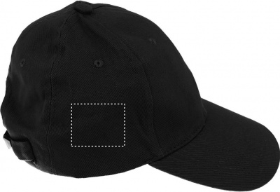 6 panel baseball cap in brushed cotton 260 gr/m2  with antique copper finish metal clips on adjustable strap closure. 6 stitched eyelets in matching colour. Size 7 1/4.