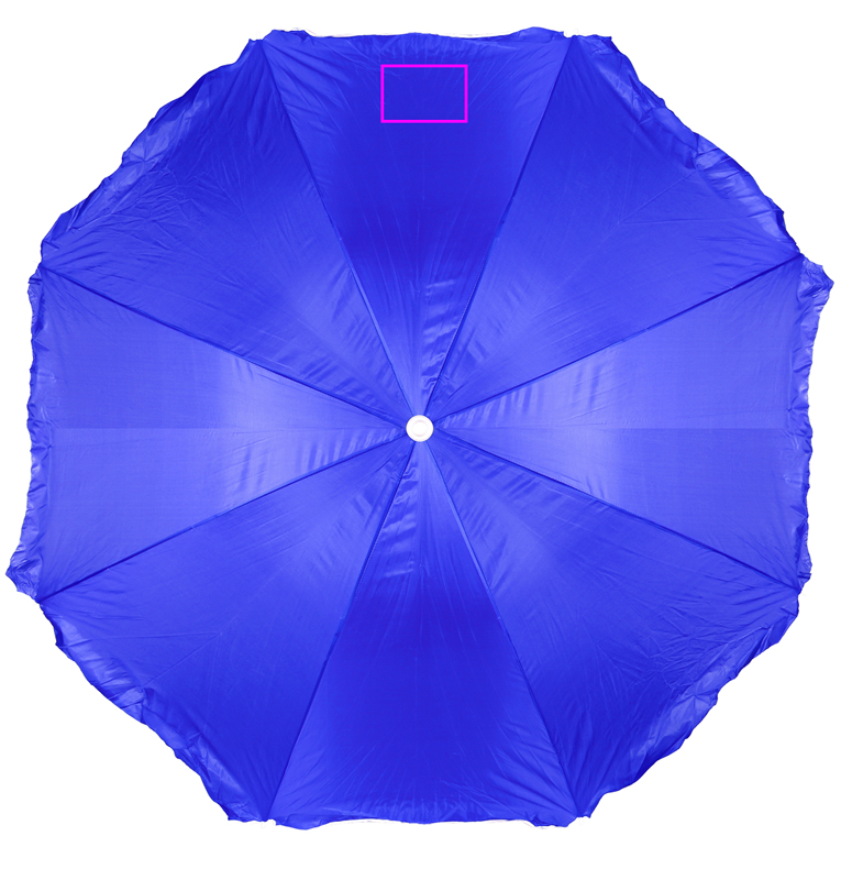 Sunshine is great - but you need to protect yourself from it. Shade yourself with our high quality beach umbrella. The white-lacquered metal bar is separate and highly adjustable, the material is made of polyester and the inner spokes are made of white-lacquered metal matching the border. The sun umbrella is packed in a transparent carrying bag. We will put your logo on one of the panels.