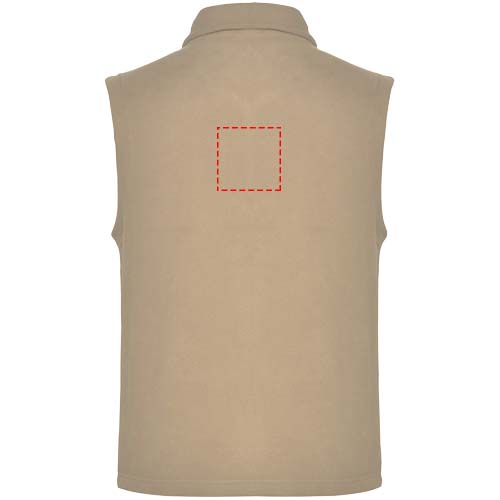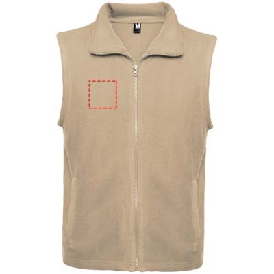 Fleece vest with polo neck and matching zipper. Side pockets with matching zipper. Removable label. The model is 185 cm and is wearing size M.