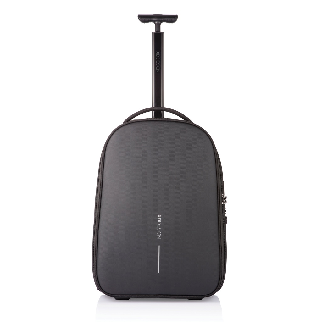 Convenient as a trolley and practical as a backpack. The Bobby backpack trolley is your ideal travel companion for short trips or daily commutes. Easily transform it from a backpack into a trolley by storing the shoulder straps in the back panel and releasing the handle. When switching into backpack mode, you can hide the handle and wrap the backpack around the wheels, keeping your back clean. The Bobby backpack trolley keeps you safe and connected with the well-known Bobby anti-theft features combined with a TSA® lock. Inside, you will find separate compartments for clothes and business devices with a quick-access laptop pocket. Made from R-pet fabric with the AWARE™ tracer. With AWARE™, the use of genuine recycled fabric is guaranteed. 19% recycled content. Registered design®