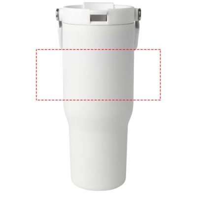 The Bronx 900 ml tumbler is made from RCS certified stainless steel and has a double-walled vacuum construction with copper insulation. The lid has a dual function with a collapsible straw for easy sipping, and a flip-top opening with a convenient folding handle for effortless portability. Fits most car cup holders. Packed in a recycled cardboard gift box.