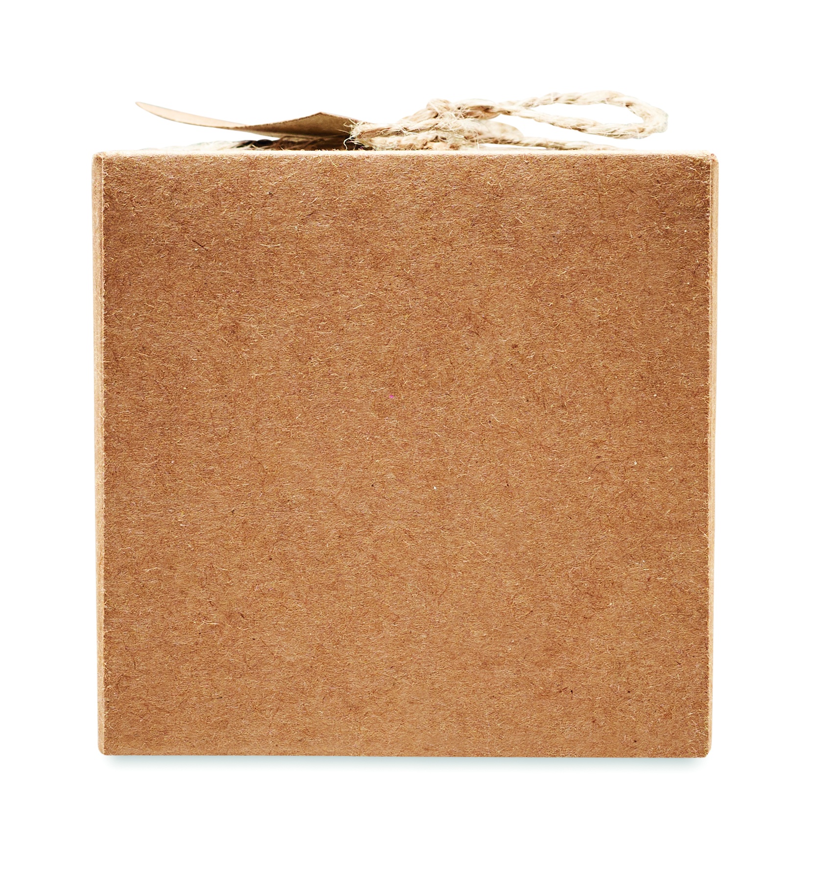 Glass candle holder (120 gr) with forest arrangement. Presented in a carton and PVC box with jute cord and kraft label. Candle included.
