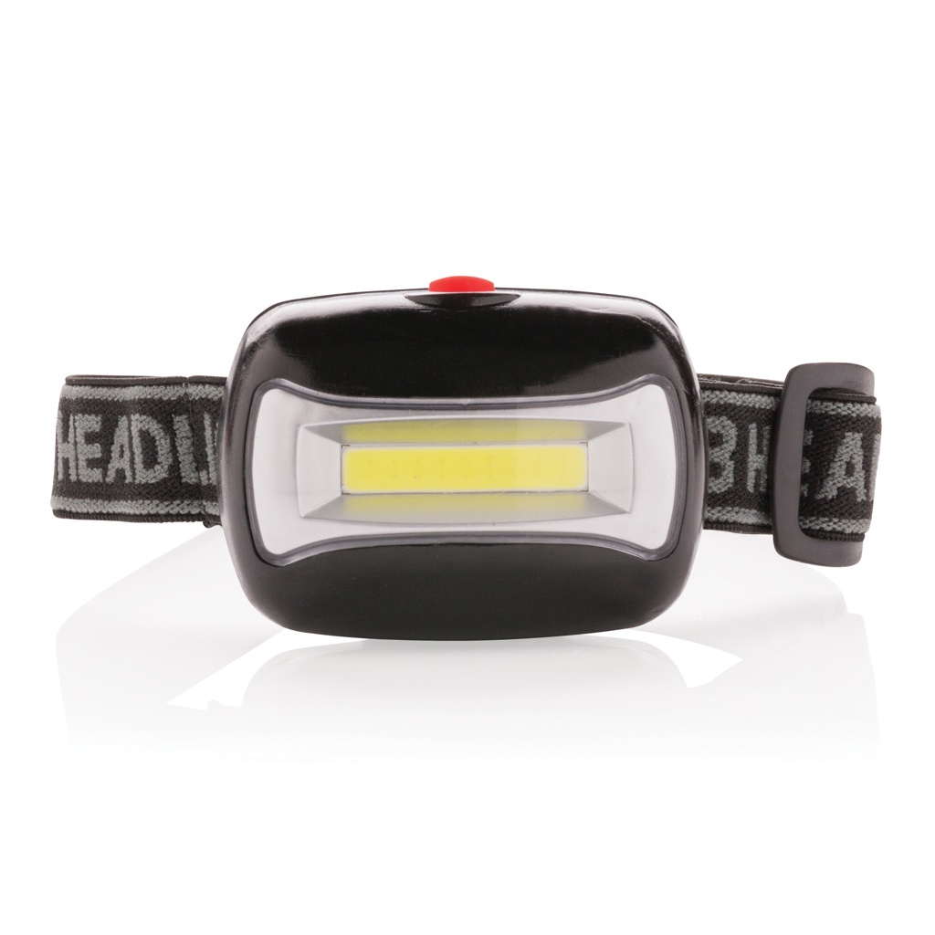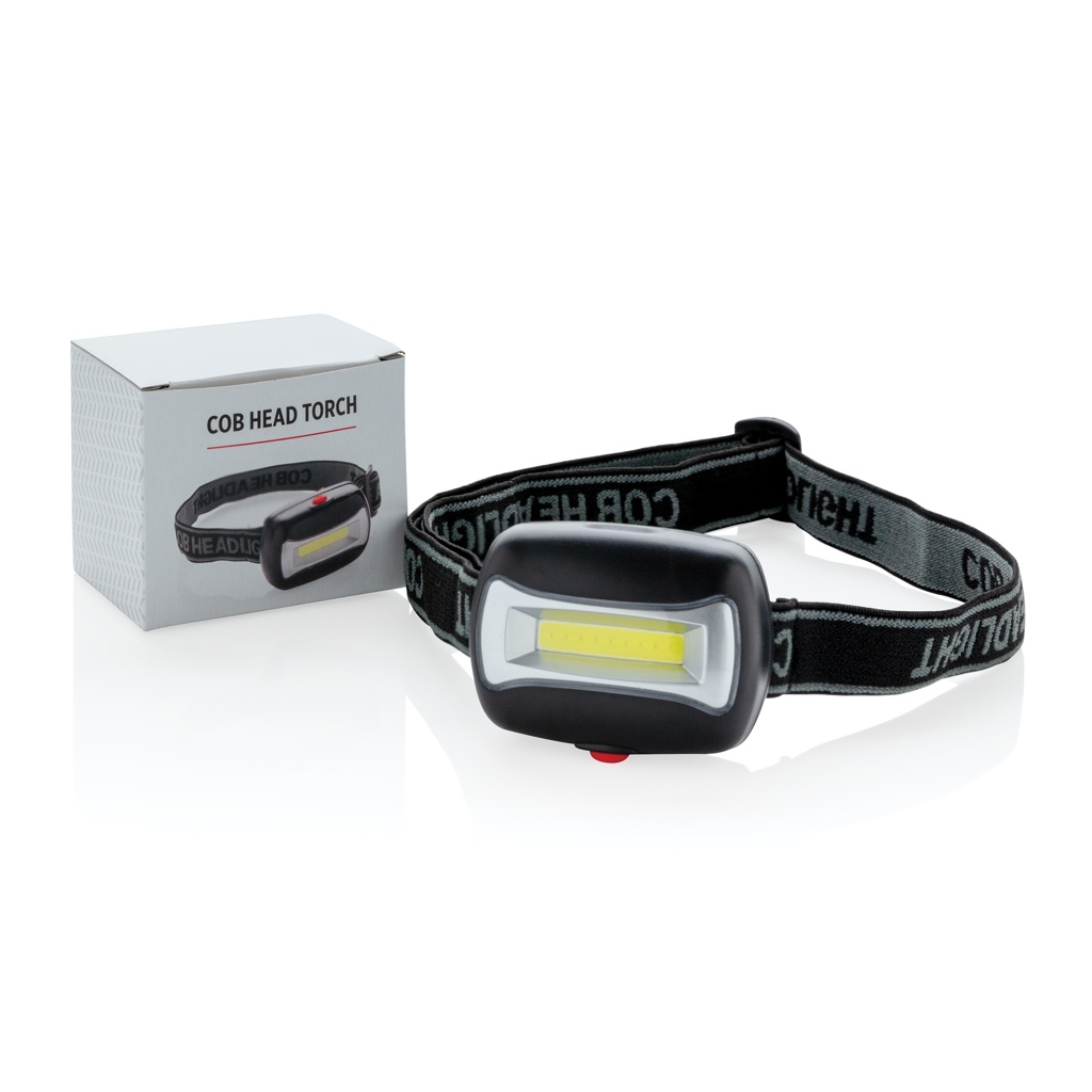 ABS head torch with ultra-bright COB torch. Including adjustable headband to fit all sizes. Including batteries.