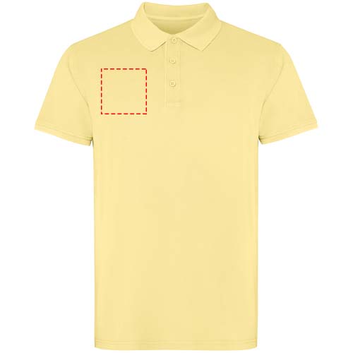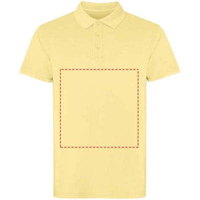 Short sleeve unisex polo. Acid-wash finish. Ribbed 1x1 collar and cuffs, with side openings. Tone-on-tone cover stitch. Placket with three buttons.