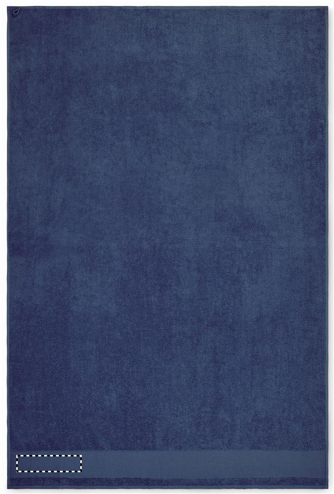 Bath towel made of 100% cotton, 380 gr/m² fabric with cotton hanger loop. Soft and absorbent design. Size 100 cm x 150 cm.