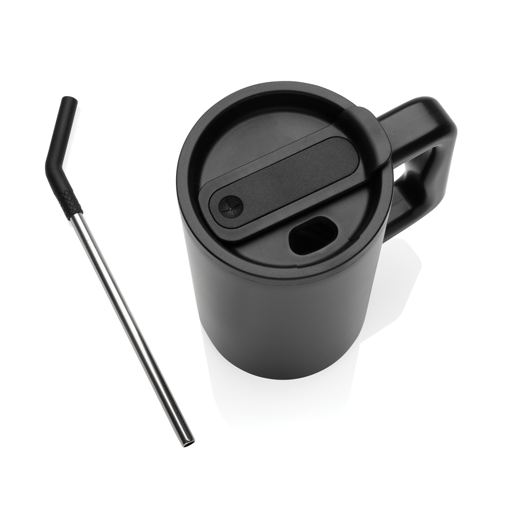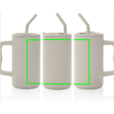 Indulge in the robust embrace of our generously sized 800ml mug – substantial and perfect for on your office desk. Its sturdy handle and broad base make it an ideal companion for your daily water intake in the office. Crafted from durable recycled stainless steel, this mug is designed to meet your hydration needs.This hefty, double-walled, vacuum-insulated mug comes equipped with a secure lid, straw, and a silicone straw tip. Versatile enough for both piping hot and ice-cold beverages, the screw-on lid offers a dual function – a convenient drinking spout or the option to use a straw. For optimal care, we recommend handwashing this substantial mug