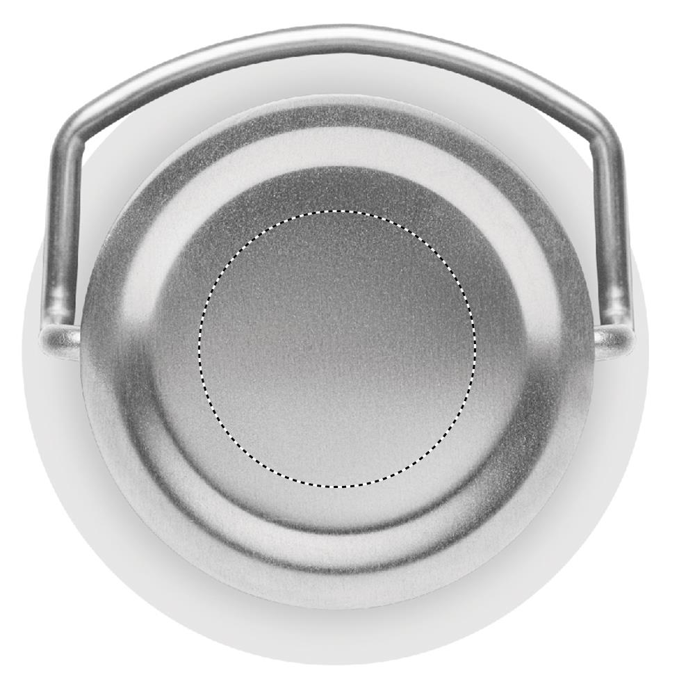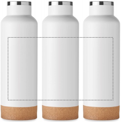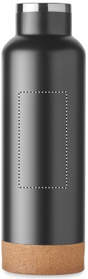 Double wall vacuum insulated flask in recycled stainless steel, the lid has a carry handle and a cork detail base (90% recycled stainless and 10% stainless steel). Leak-free. Capacity: 500 ml.