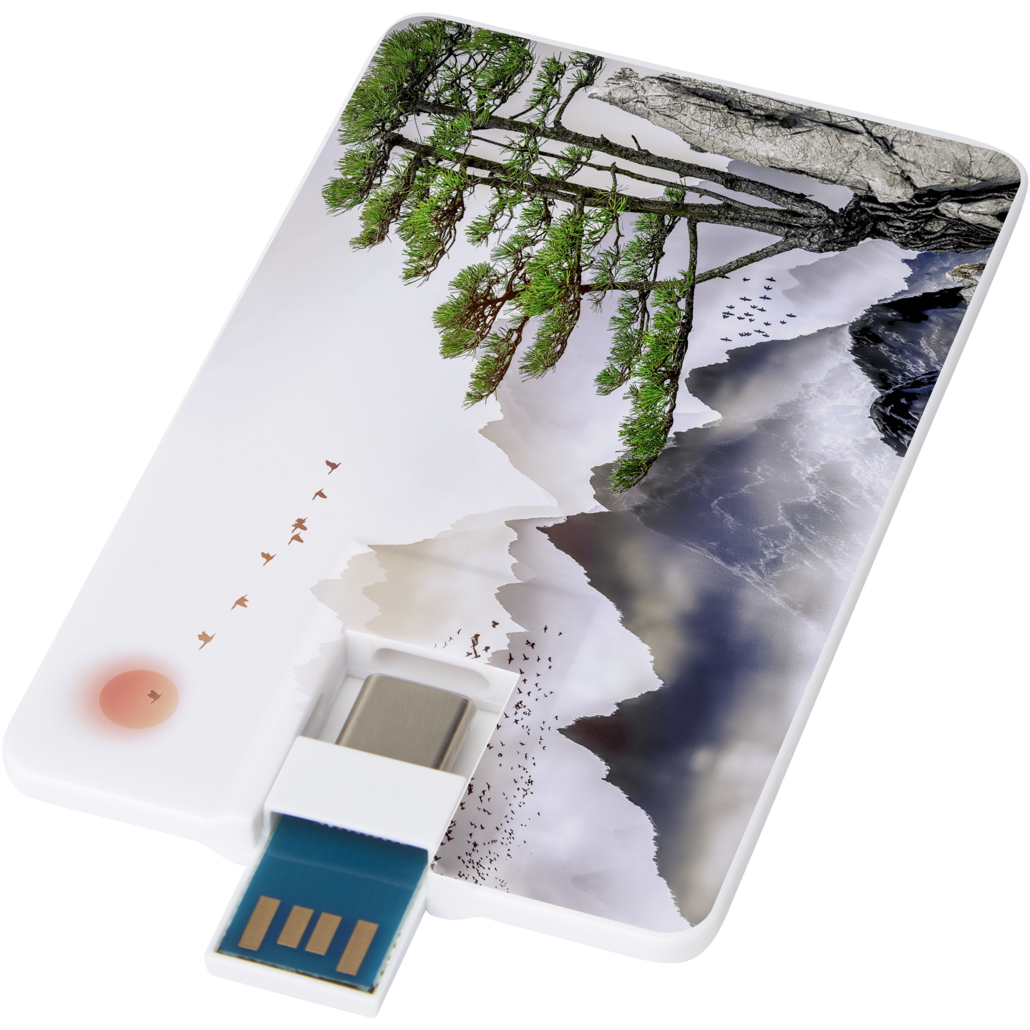Next GEN 32GB rotatable USB that offers dual ports (Type-C and USB-A). USB 3.0 with a write speed of 9MB/s and a read speed of 20MB/s. Delivered in an envelop.
