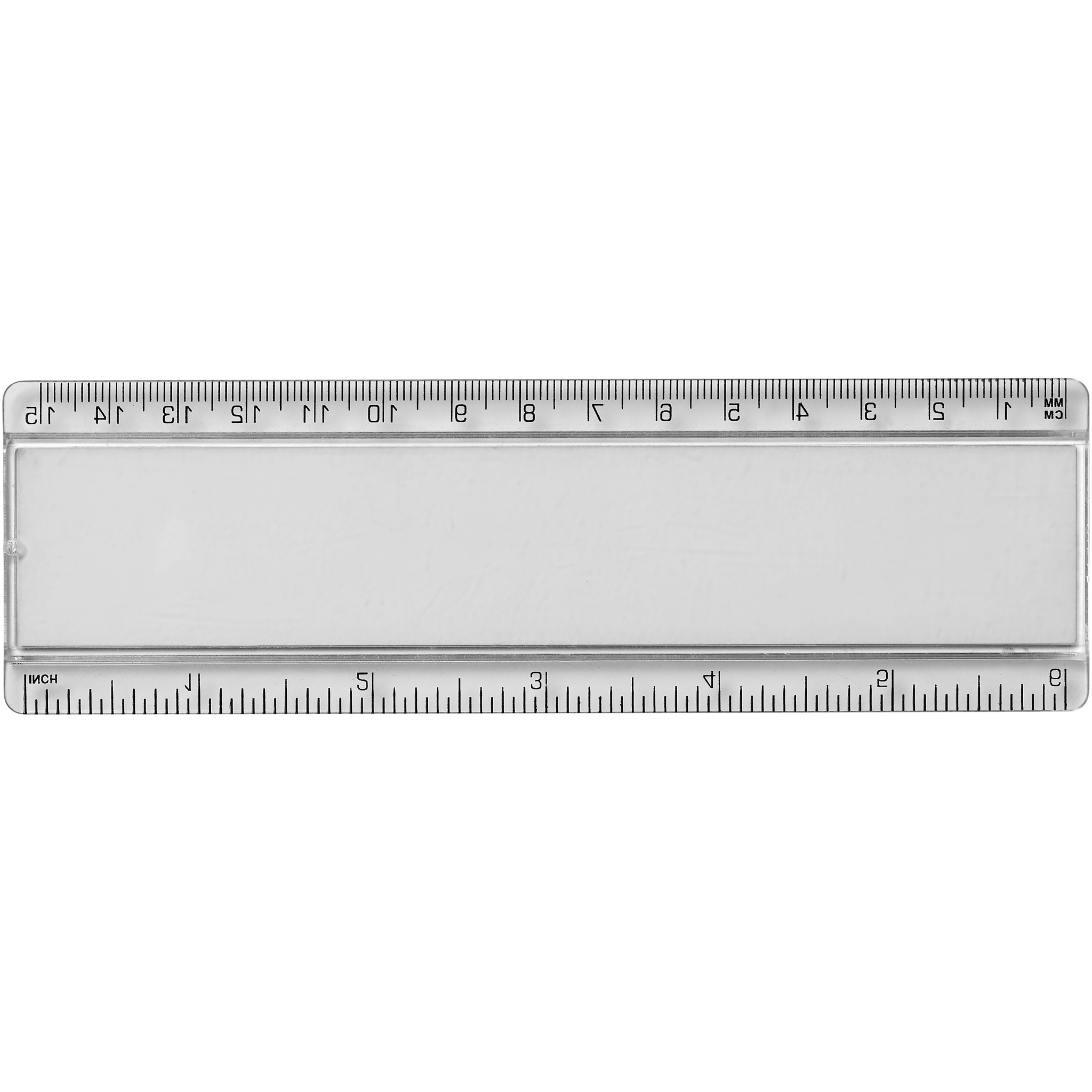 Paper insert plastic ruler with both markings in inches and centimetres.
