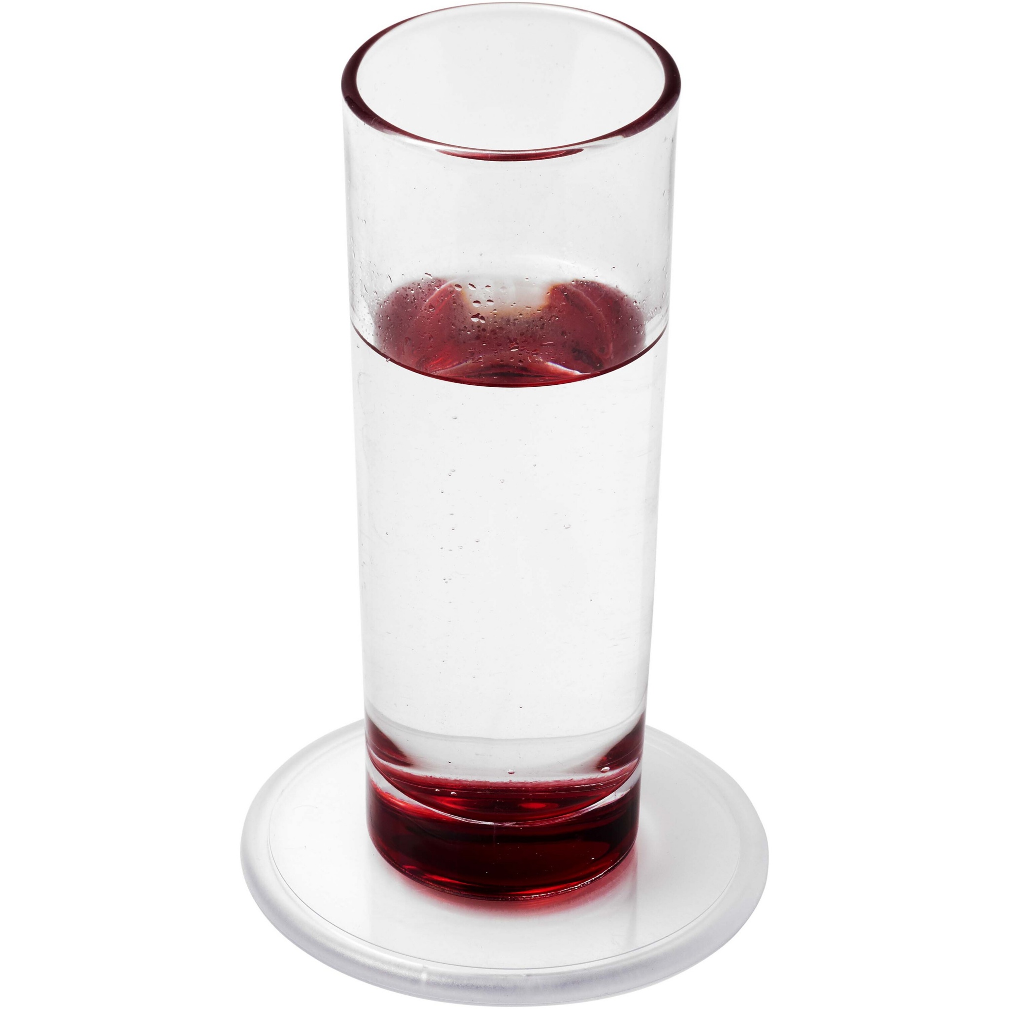 Two-part plastic coaster that carries a printed paper insert. Paper insert can be printed on both sides.