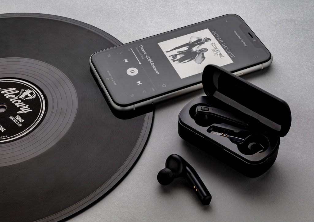 Free Flow TWS earbuds in charging case, black