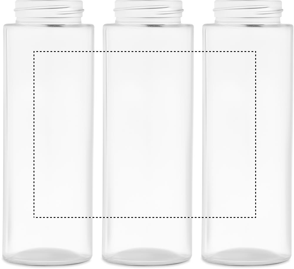 Glass drinking bottle with bamboo lid with handle. Capacity: 500 ml. Leak free. Bamboo is a natural product, there may be slight variations in colour and size per item, which can affect the final decoration outcome.