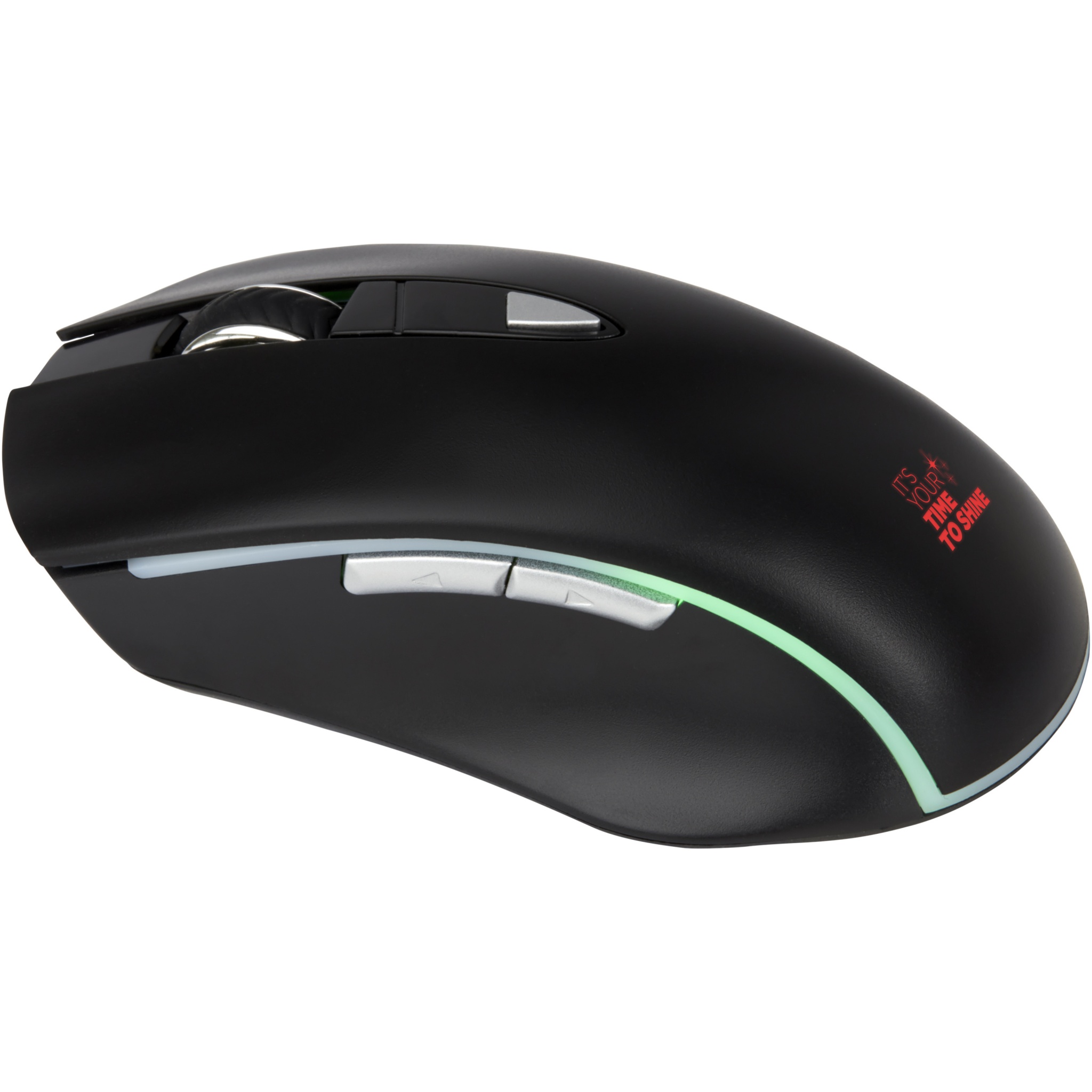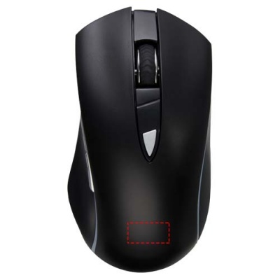Ergonomic wireless mouse that fits the palm of the hand perfectly. Great wrist support for long hours of working/gaming. The mouse has 3 DPI settings (800/1200/1600) for all sensitivity requirements. The built-in 400mAh rechargable li-on battery provides up to 20 hours of use with LED ON. When decorated with laser engraving the logo will light up and shine. LED colour changes randomly.