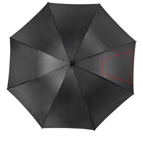 Golf umbrella with a polyester canopy fitting 2 persons. It has a sturdy metal shaft and a high quality full fiberglass frame, offering maximum flexibility in windy conditions. Curved EVA handle, plastic tips and top. Available in a wide variety of contemporary colours and has a large decoration area on each of the panels.