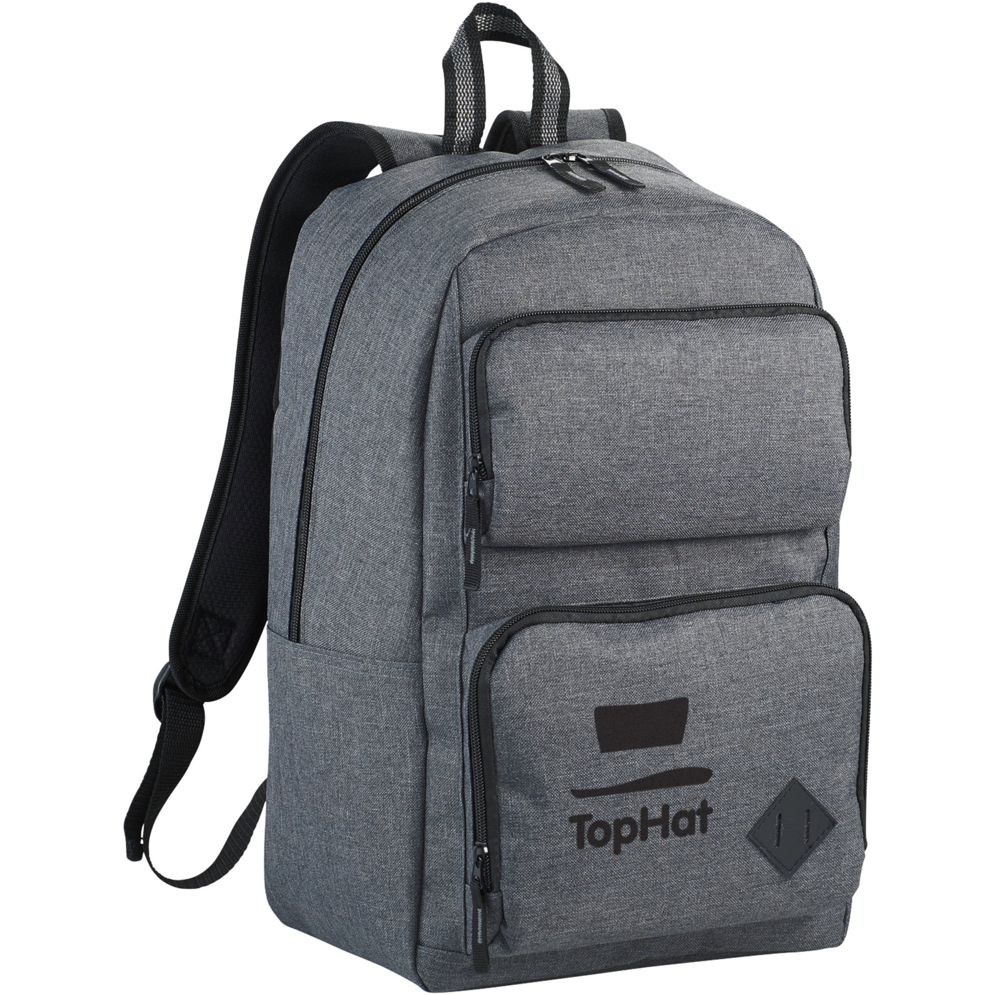 Zipped main compartment with padded laptop sleeve holds up most 15.6" laptops and has a dedicated tablet pocket with room for all your other business essentials. The two front pockets offer flexible decorating locations and are large enough for power banks, cables, and other essentials. The side pocket offers additional storage. Adjustable padded backpack straps and top grab handle. There may be minor variations in the colour of the actual product due to the nature of the fabric dyes, weaves, and printing.