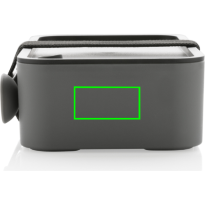 This stylish and sturdy lunchbox fits perfectly with a healthy lifestyle! It is big enough for carrying sandwiches and delicious salads. Made with 93% GRS certified recycled PP, GRS certification ensures a completely certified supply chain of the recycled materials. Including a handy spork and elastic strap. Capacity 1.2 litre. The lunch box is easy to clean, but should not be put in the dishwasher or used in the microwave.