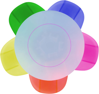 Highlighter with five different colors and large advertising space in the middle. We print your logo in the middle of the highlighter.