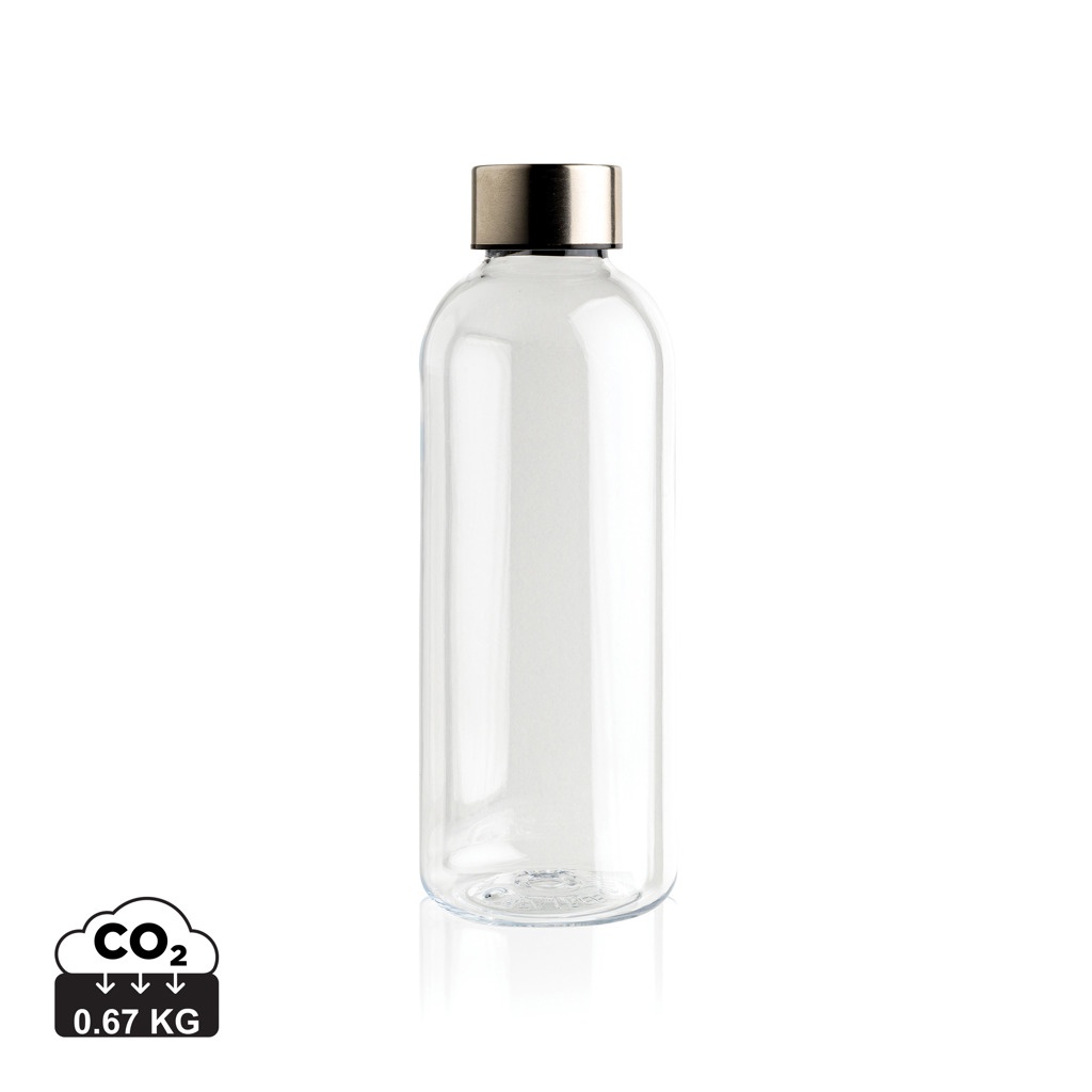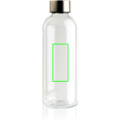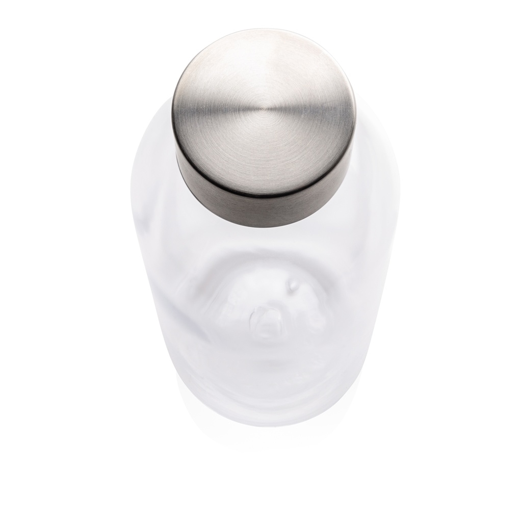 Leakproof water bottle with metallic lid, transparent