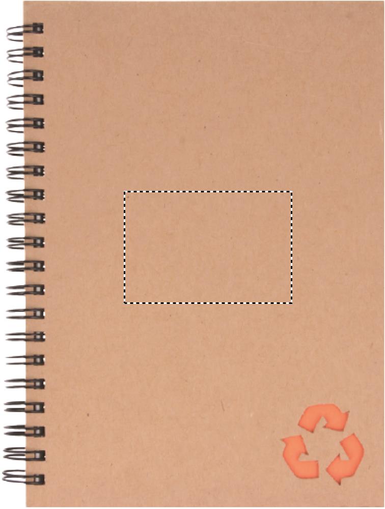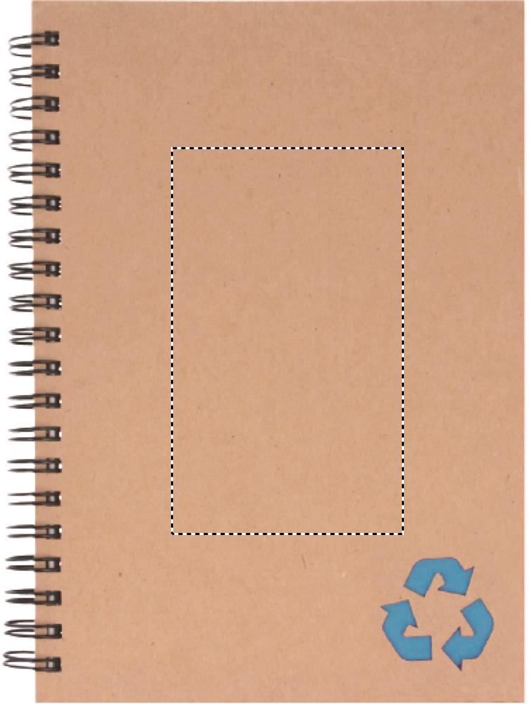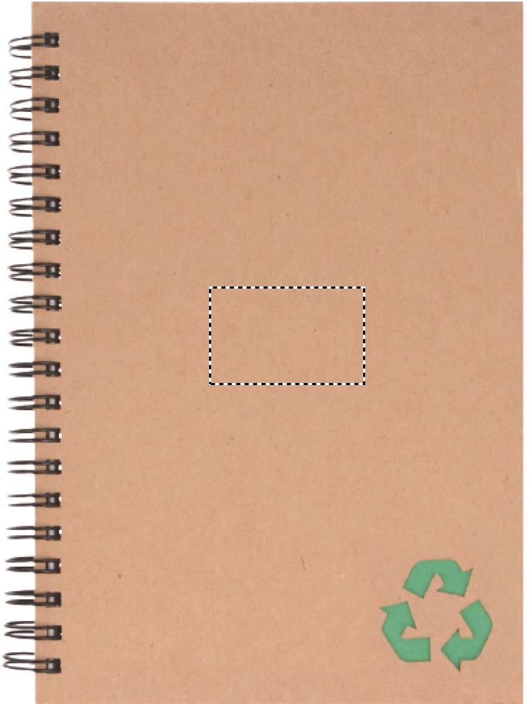 Recycled carton cover notebook. Twin-wire. 140 lined mineral paper pages (70 sheets). Mineral paper is made out of calcium carbonate and HDPE (polyethylene resin) used as a binder. It is waterproof and resistant to grease.