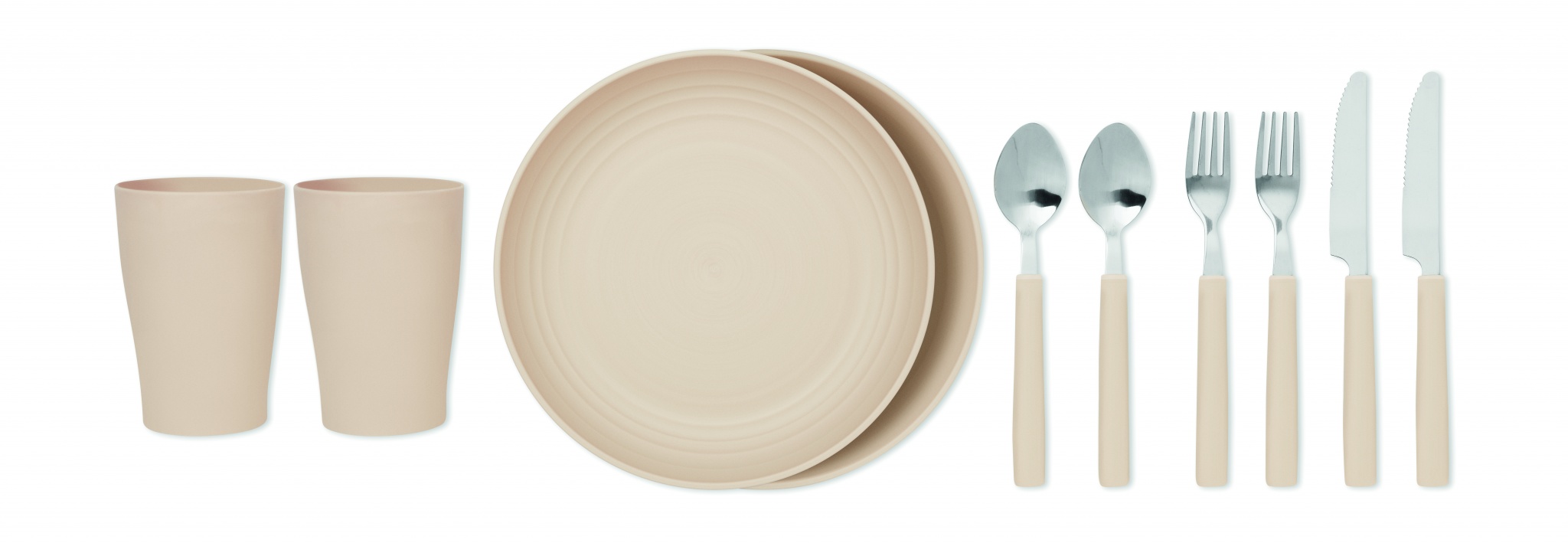 Cooler bag or outdoor picnic backpack in 2 tone 600D RPET including 2 person table accessories. It has stainless steel knife, and PP fork, spoon and cup.