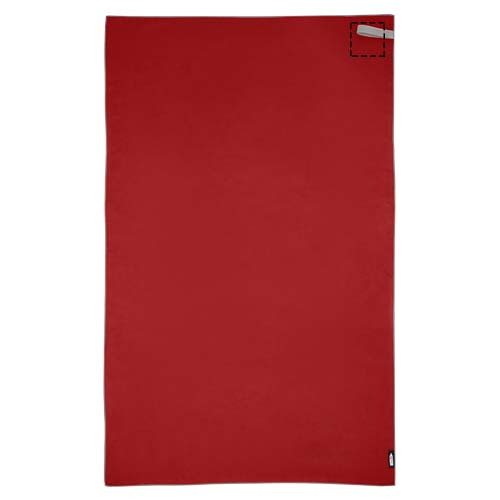 This sport towel absorbs very well, is lightweight and dries quickly. In addition, the fabric is durable and extremely soft. When the towel is folded and secured with the elastic band it's reduced to a small size, making it suitable for bringing to the gym, swimming pool, or for when going backpacking or camping. The towel has a size of 130 x 80 cm and is made from 200 gr/m2 recycled PET polyamide, and can be washed in the washing machine at 40 °C. Delivered with a storage pouch (20 x 8.5 cm) made from recycled PET plastic, which provides a great area for printing a logo.