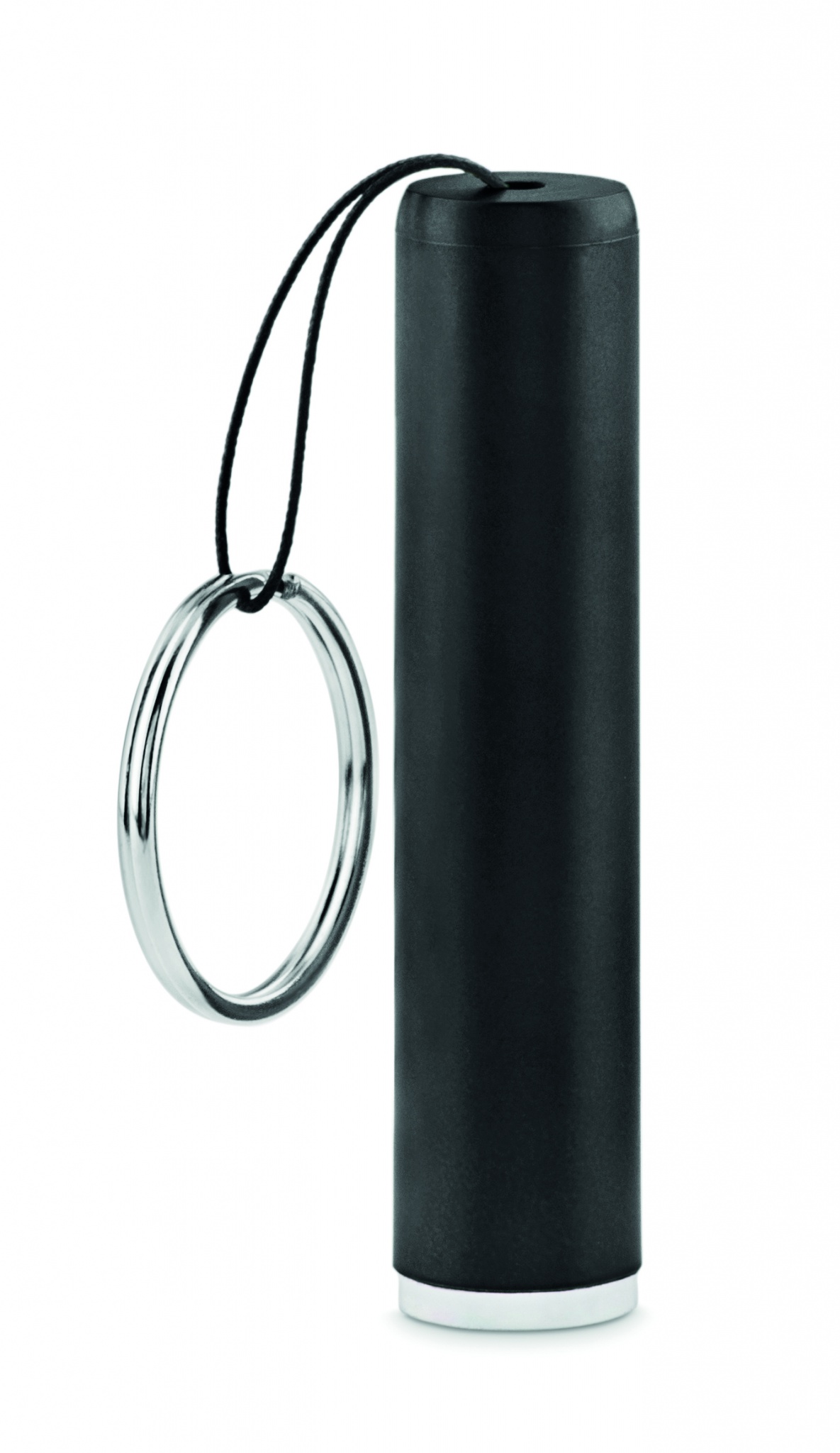 LED bulb torch in ABS with key ring. 3 AG3 batteries included. The barrel includes a LED light to illuminate the engraved logo.