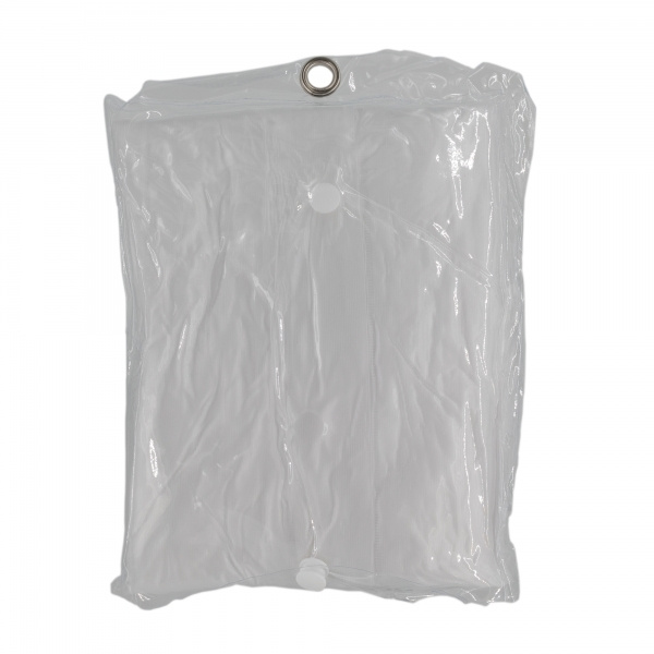 PVC rain jacket (one size XL) transparent frosted with hood, two front pockets and snap buttons. We will print your logo on the chest (heart side).