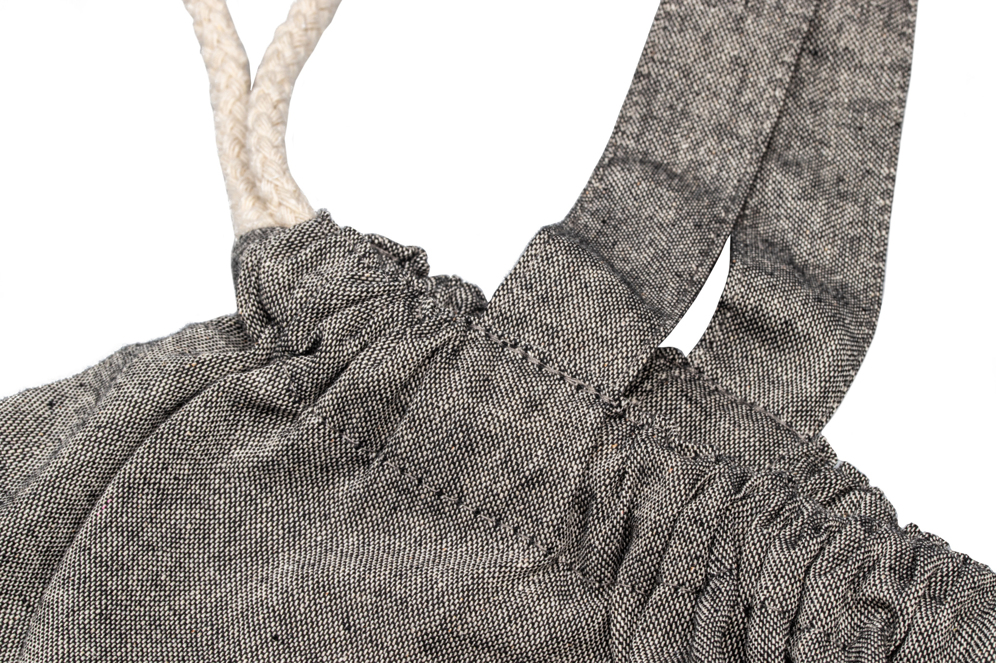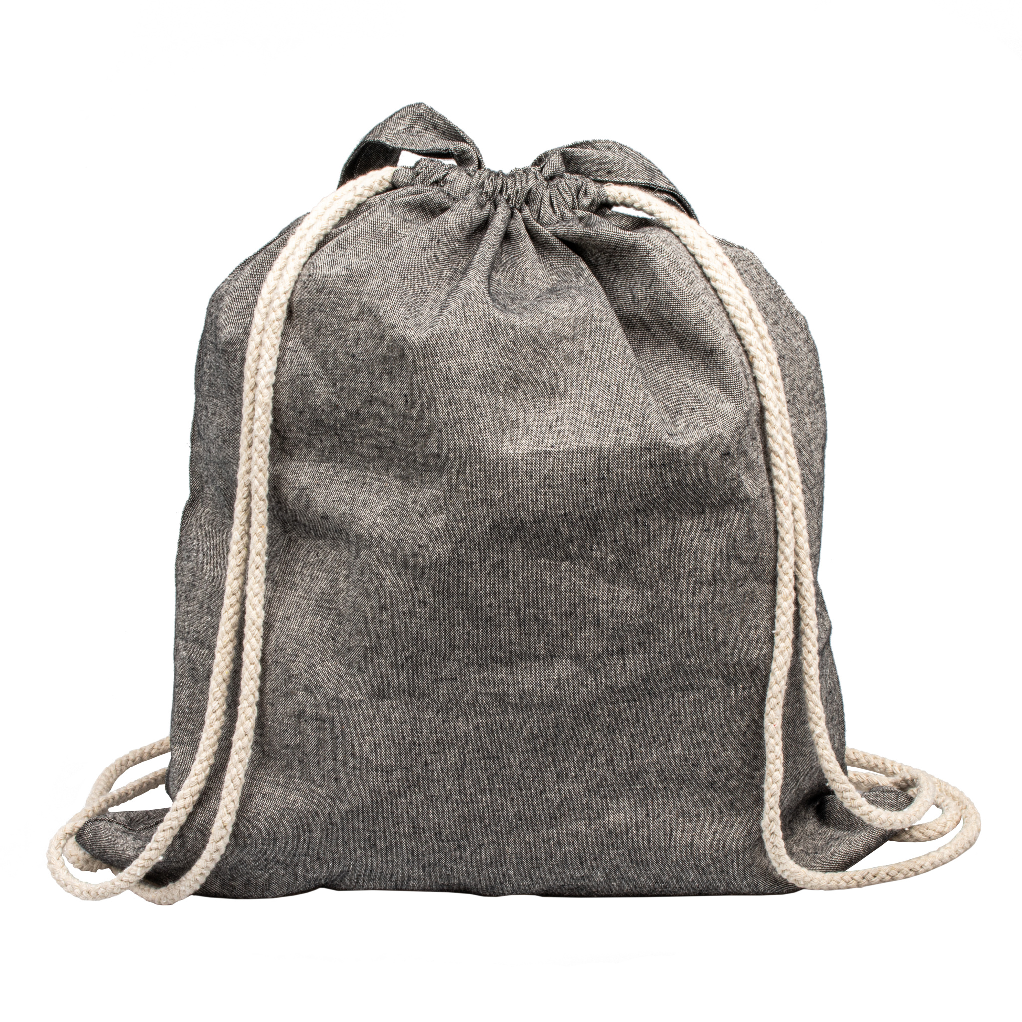 Oeko-Tex® STANDARD 100 certified, recycled cotton bag with long carrying handles, additional carrying cords and a grammage of 140g/m². The logo is printed on one side of the bag.