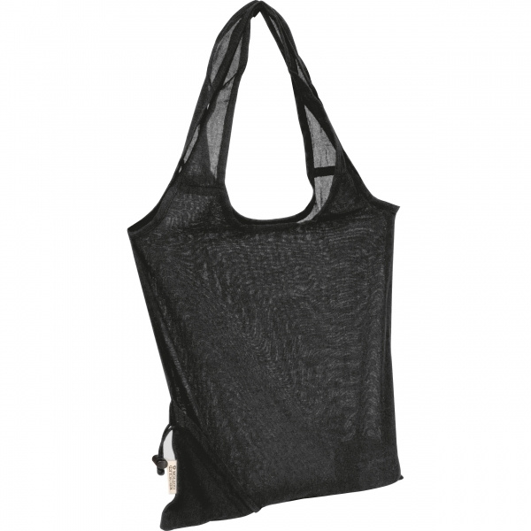The cotton bag made from recycled material is the perfect choice for eco-conscious customers. Thanks to its practical folding function and plastic closure, it is easy to store and carry. The 118 g/m² material is lightweight, durable, and long-lasting—perfect for everyday use.