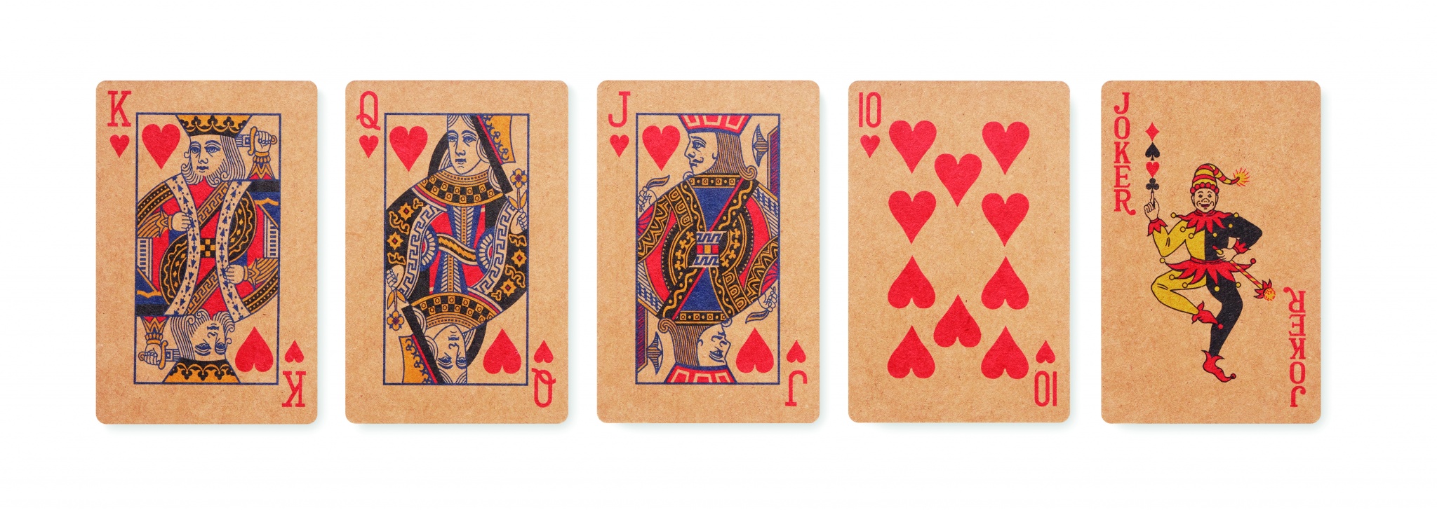 Recycled paper classic playing cards in a paper box. 54 cards.