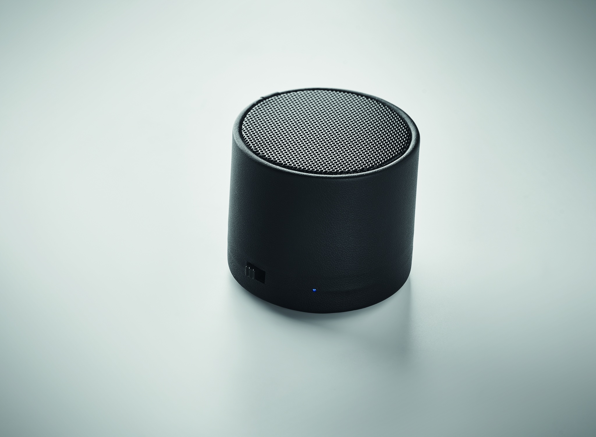 5.0 wireless speaker with casing in ABS and PU which is 58% recycled (40% recycled polyester and 18% recycled PU) and LED light indication. Output data: 3W, 3 Ohm and 5V. Playing time approx. 3h.