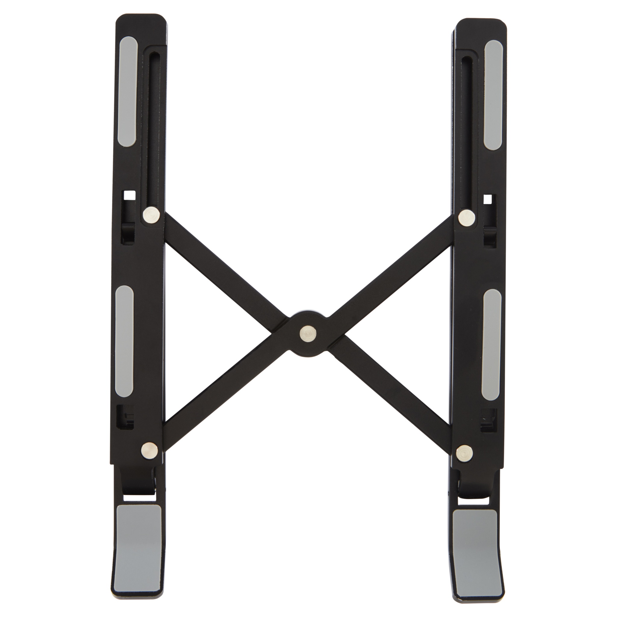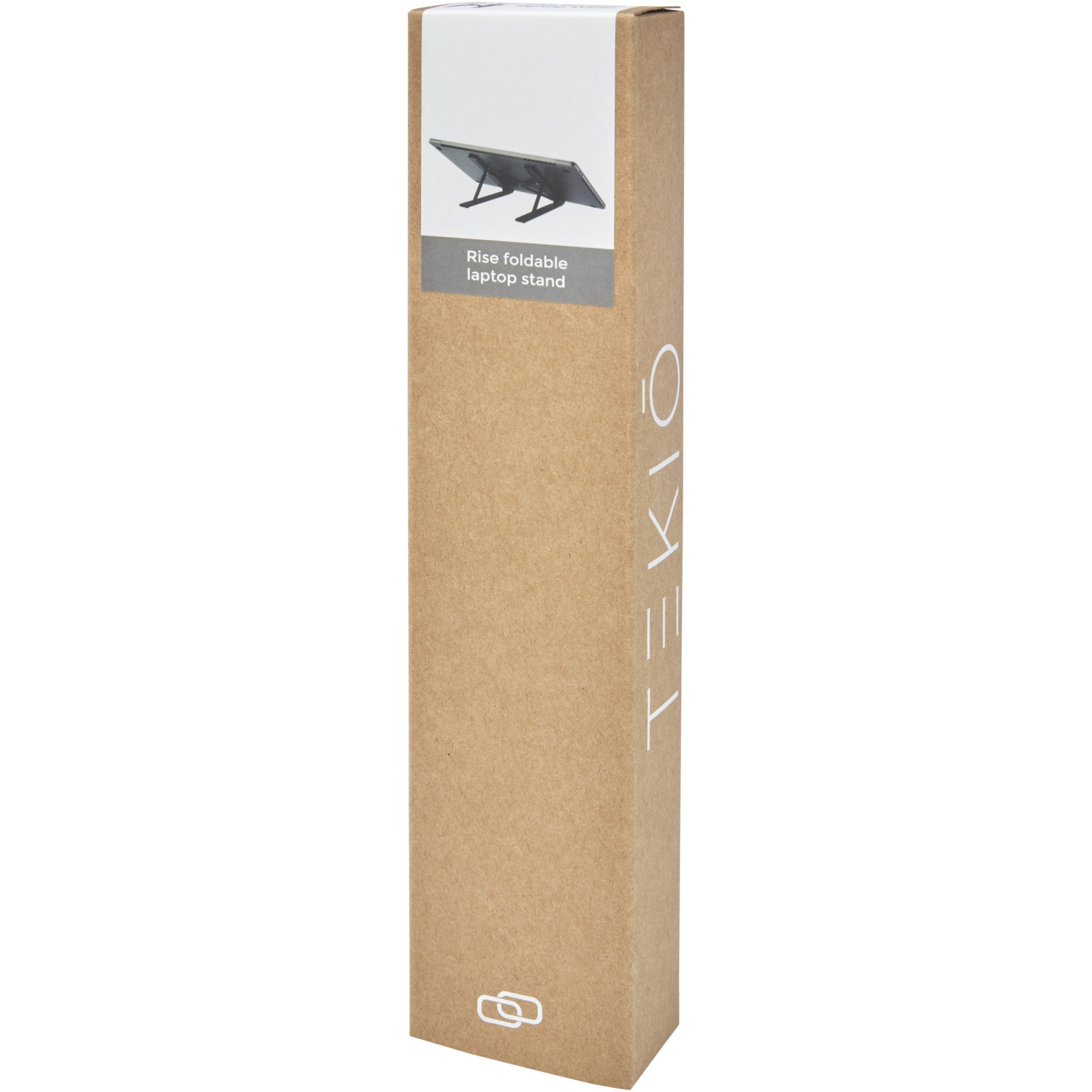 Universal, compact and foldable laptop stand made of aluminium alloy. The stand can be adjusted to 7 different angles for optimal ergonomic posture. Folding the stand in and out is very easy and can be done in seconds. The bottom has rubber strips to prevent it from moving. Comes with a pouch for easy carrying. Delivered in a premium kraft paper box with a colourful sticker.
