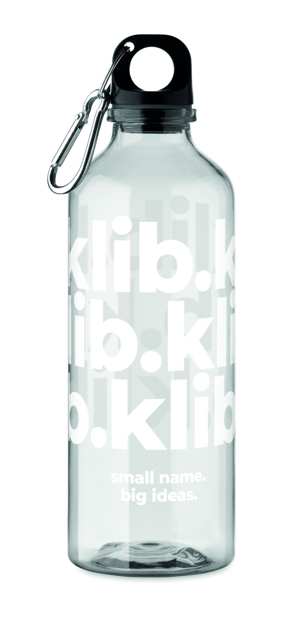 Drinking bottle in RPET with carabiner. Capacity: 500 ml.