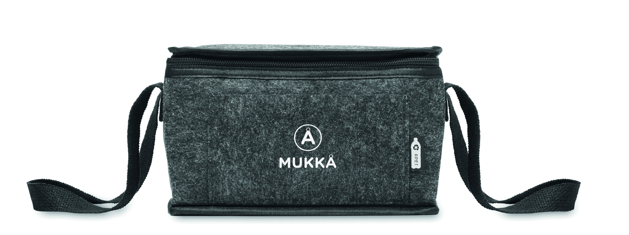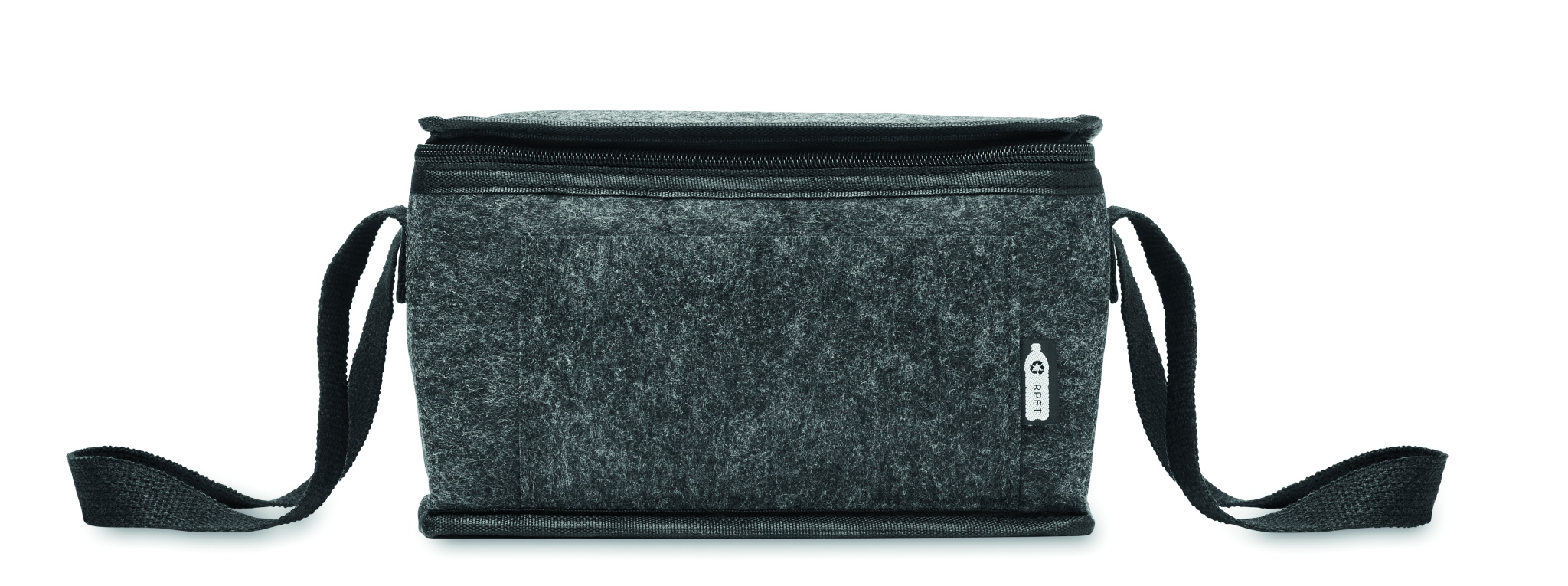 RPET felt cooler bag with front pocket. 1mm RPET felt and 3 mm insulation aluminium laminated foil. Capacity: 5L.