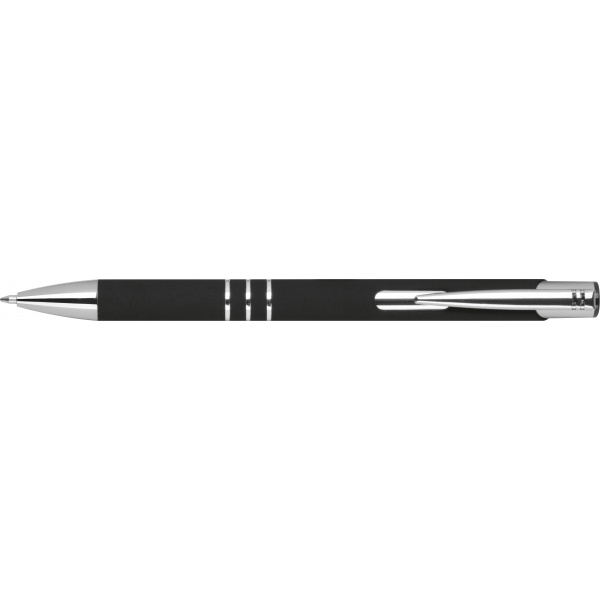 Semi gel pen made of recycled aluminum with a rubberized surface and blue-writing large-capacity refill (semi-gel 0,7mm tip).