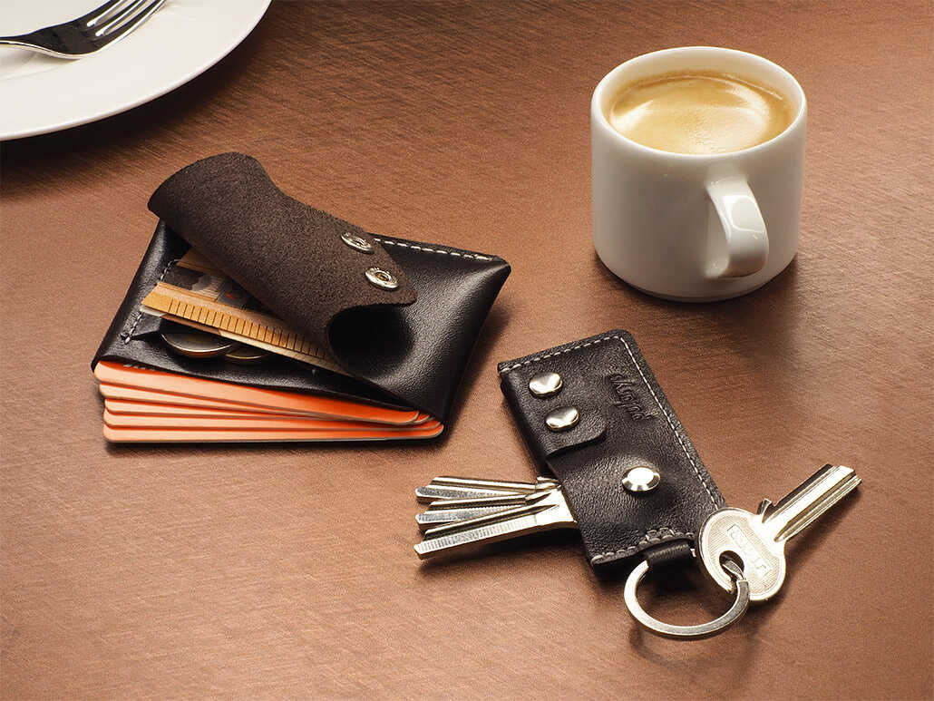 Includes leather wallet